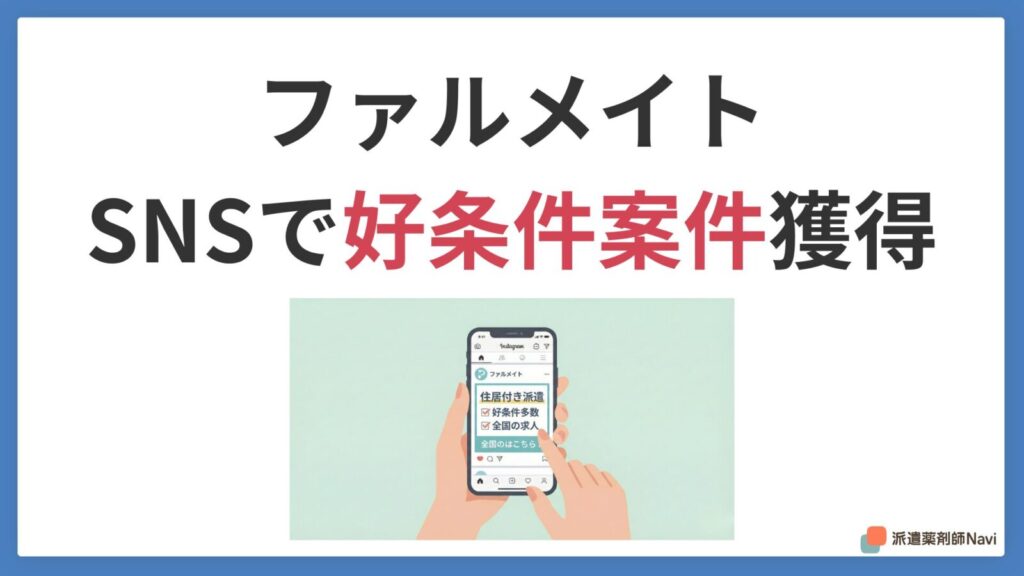 A. 「ファル・メイト」を利用しました。 公式LINEやTwitter(X)で住居付き案件の情報が流れてくるので、それを見て応募したり、担当者に紹介してもらったりしました。他の派遣会社(ファーマプレミアムなど)も使っていましたが、住居付き案件の情報量はファルメイトが多かった印象です。