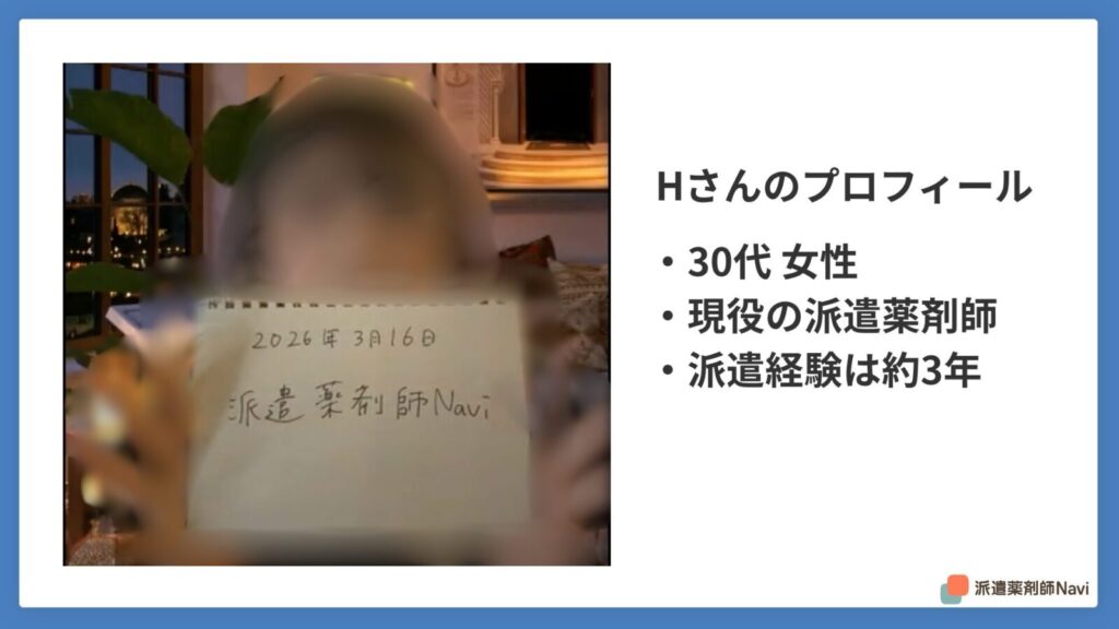 2026年3月に当サイトの「派遣薬剤師経験の買取」にご応募いただき、リモート面談でお話を伺いました。