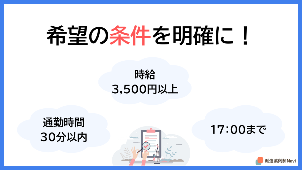 と、明確な希望条件があると、派遣会社があなたに合った求人を探しやすくなります。