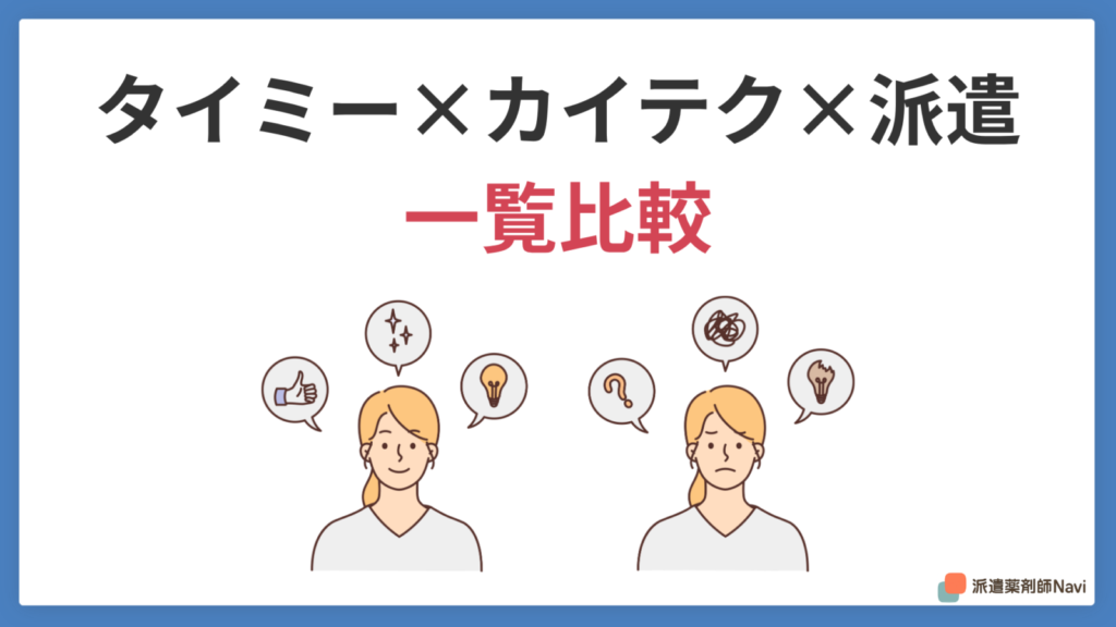 タイミー・カイテク薬剤師・派遣の違いを一覧で整理します。