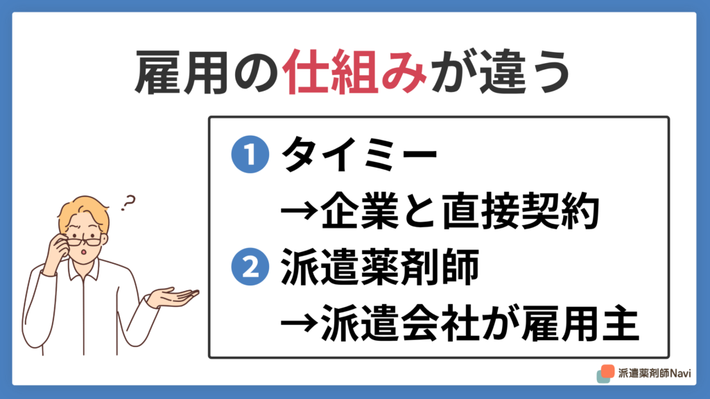 タイミーと派遣薬剤師は「仕組み」がまったく違う
