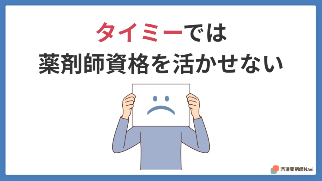 タイミーは手軽で便利なサービスですが、薬剤師が資格を活かすには向いていません。