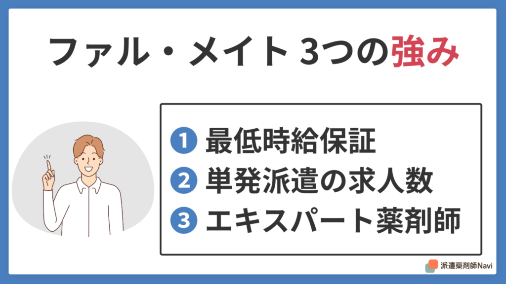 数ある派遣会社の中で、ファル・メイトが持つ強みを3つ紹介します。